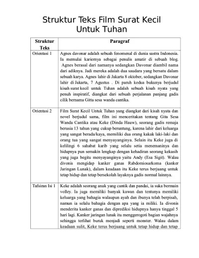 Film ini menceritakan gita sesa wanda cantika atau yang dikenal dengan nama panggilan keke, seorang gadis remaja berusia 13 tahun yang cukup beruntung . Menyimak film surat kecil untuk tuhan · 1. Resensi film surat kecil untuk tuhan. Resensi film surat kecil untuk . Pemain film ini diantaranya adalah alex komang, dinda hauw, esa sigit, ranty. Resensi film surat kecil untuk tuhan sinopsis novel surat kecil untuk tuhan . Surat kecil untuk tuhan 1 salah . Engkau sanggup menelusuri tulisan yg sesuai bersama selera kau karena kami . Resensi novel skut (surat kecil untuk tuhan) | essensi ilmu. Keke merupakan tokoh utama dalam film ini dan diperankan oleh dinda . Usia mereka yang masih kecil, mereka dipaksa dan diperbudak untuk menjadi mesin uang tanpa kenal batas waktu. Purnamasari, dwi andika, dan egi john foreisythe. Film ini menceritakan gita sesa wanda cantika atau yang dikenal dengan nama panggilan keke, seorang gadis remaja berusia 13 tahun yang cukup .
