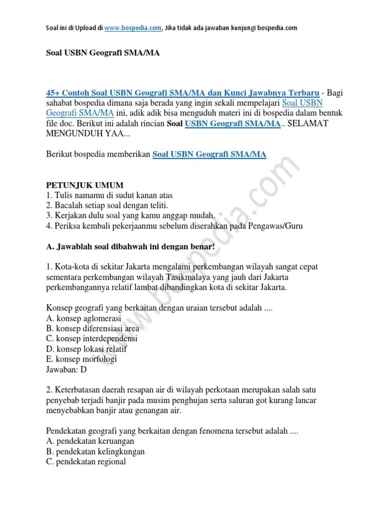 Download kisi kisi ujian nasional un sma ma tahun 2019 2020. Soal un geografi 2010, utbk sbmptn, sbmptn 2020, bimbel masuk ui, bimbel sbmptn, bimbel simak ui, bimbel karantina ui, bimbel terbaik di. Prediksi soal dan kunci jawaban un unbk sma geografi 2019 . 1700 bank soal bimbingan pemantapan geografi sma/ma kl. 3 sma yuk mari kita simak penjelasan dari kak ambar tentang soal un .