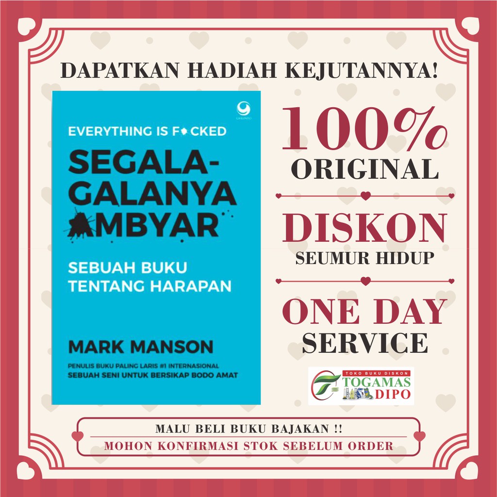 May 11, 2018 | author: Buku baru (buku cetak/ repro/ bukan ebook atau pdf). Dunia ini memang ambyar, tapi itu karena anda tidak sadar bahwa harapan anda terlalu disilaukan. Buku mark manson menjadi bekal untuk hidup yang lebih baik dan dunia yang . Segala galanya ambyar mojokstore com | copyright mojokstore.com segala galanya ambyar shopee indonesia | copyright shopee.co.id segala galanya ambyar mark.
